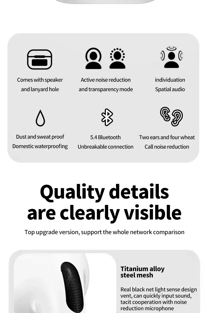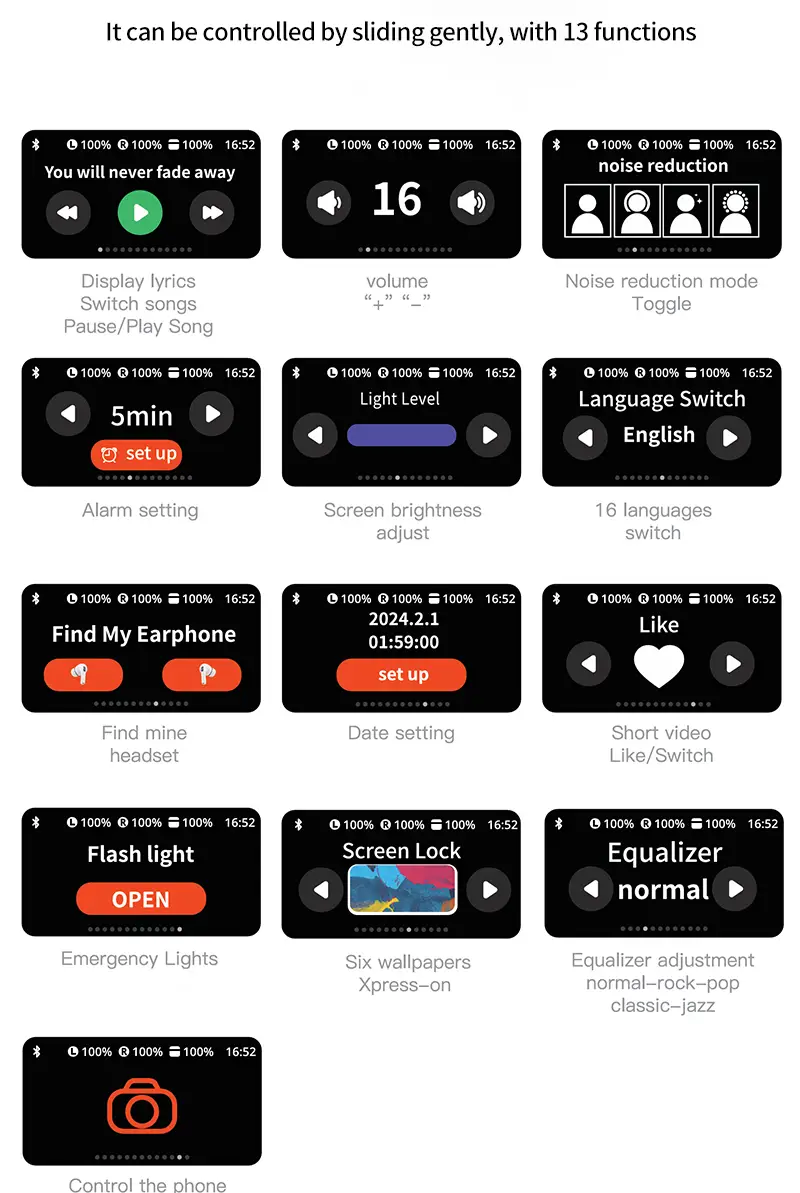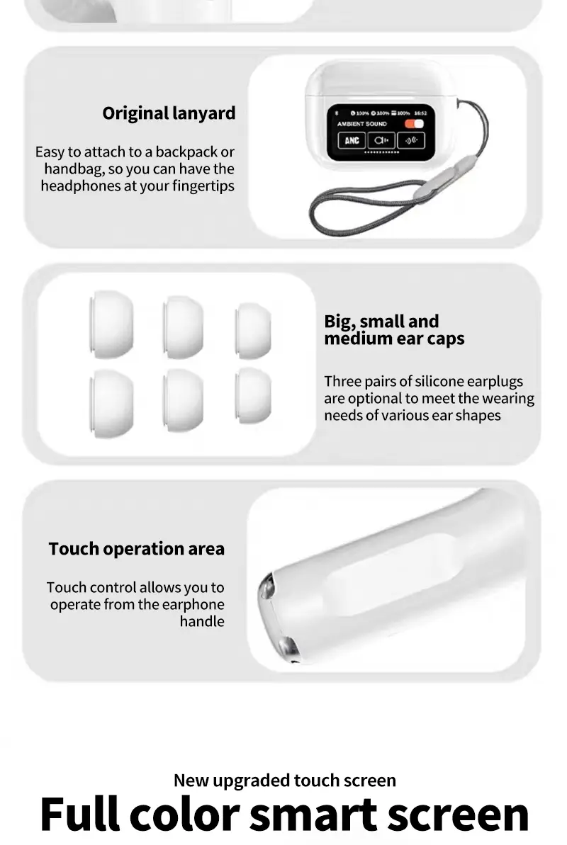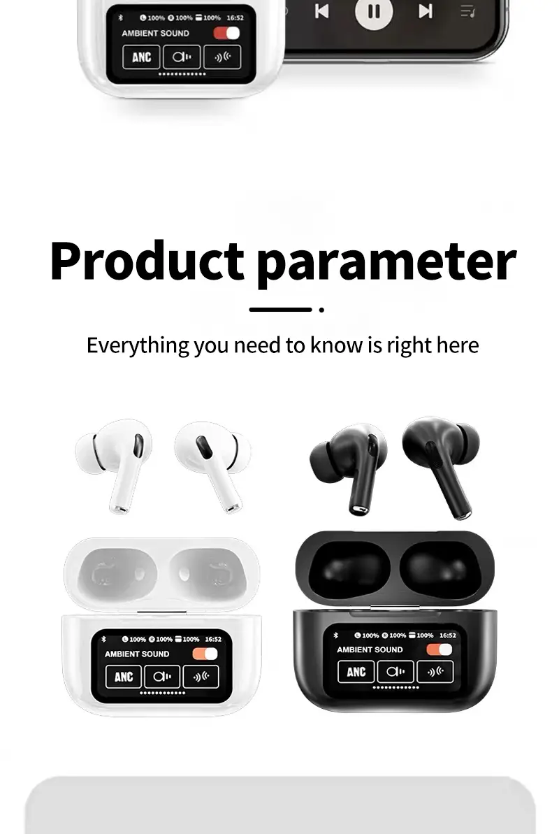 Guanersheng Smart Screen Wireless Earphones - Black