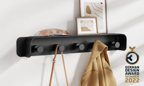 KAPANOU Wall Mounted Coat Rack with Shelf-5 Hooks, Coat Rail with Heavy Duty Metal Hooks for Bathroom, Bedroom, Entryway, Modern and Decorative Aluminum Wall Hanger for Hanging Coats, Towels, Hats (Black), New Year Sale , Top gift picks